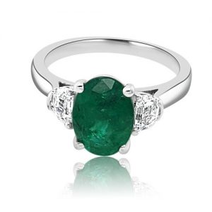 Platinum Oval Emerald & Halfmoon Diamonds