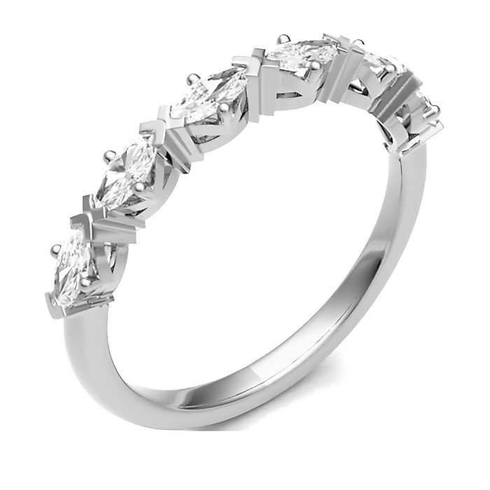 - Consider 50% Diamond Coverage – Full eternity bands are beautiful, but a 50% diamond wedding band saves money and allows for resizing.